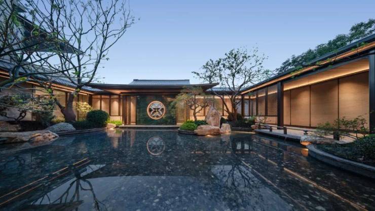 三进下沉式庭院,更有“三老镇园”——百年杜鹃、百年紫薇、百年金弹子。意喻爱情的美好;事业的通顺,以及家庭的圆满。由此引出的“曲院风荷”、“双峰插云”,或雅淡,或壮阔,皆独立成景。