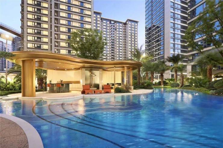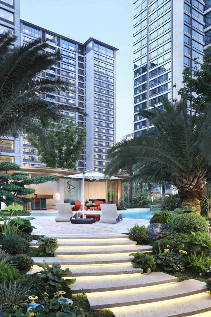第一层刻度,工艺、用材经得起时间考验。建筑外立面以铝板、干挂石材、大面积玻璃为主要材质,主色调是豪宅标志性的高级灰,阳光下折射出层次丰富的光影效果。10年后,这种经典感依然不会褪色。
