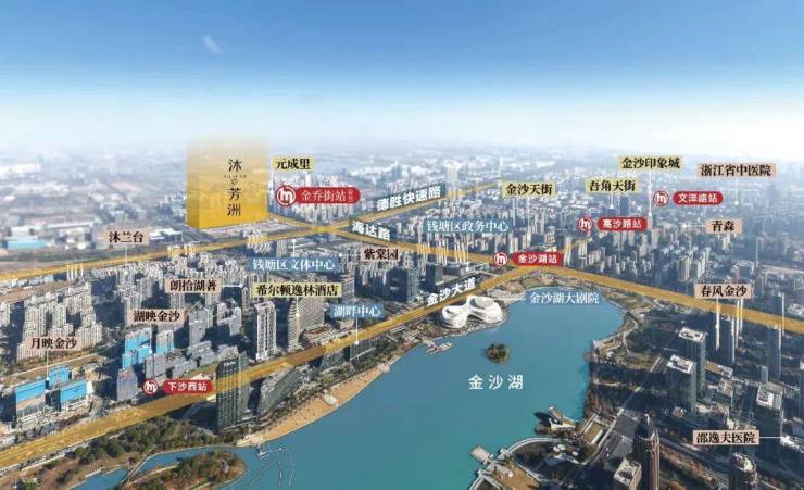 直线距离金沙湖仅约1.8公里,一脚油门到钱塘图书馆、文体中心、希尔顿酒店、大剧院、金沙天街等六大商业体,加上直距德胜快速路入口只有约500米,快捷可至钱江新城、武林广场、奥体中心等核心商圈,很是宜居宜游。