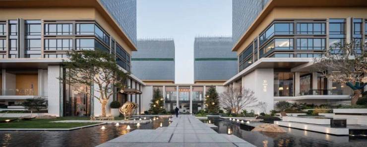 踏进项目,悬浮绿洲、门厅飞瀑开场,穿过超长约150米的超级城市界面主入口,开启“一轴七岛十一境”的浮岛游园,下沉庭院、戏水池、镜面水院与数不尽的花卉、树木、植被变幻出层次丰富的探索旅程。