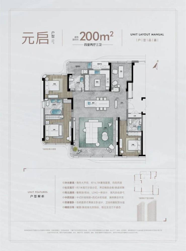 产品规划:建筑面积约200-260平大平层
