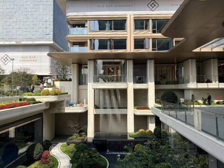 建筑立面以浅色石材为底,勾勒暖色金属线条,呈现潮奢简约美学。大面宽、大面积玻璃窗,带来卓越采光通风,引景入室,实现建筑与自然的诗意对话。