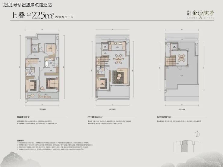 上叠最重要的就是露台,金沙院子的上叠中间套也没有妥协,每层都有大露台。