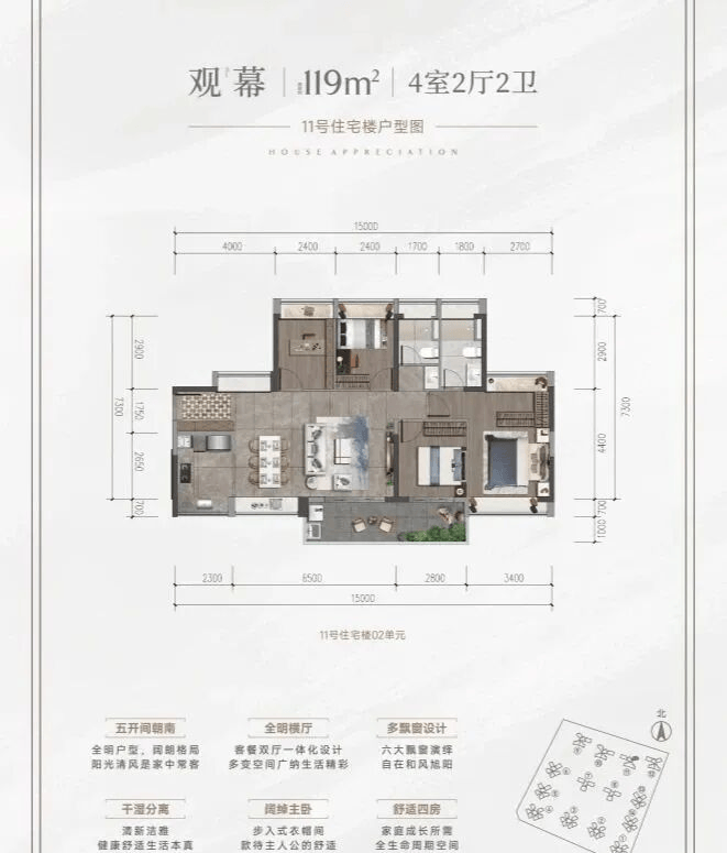 高实用率:户型方正,南北通透,部分户型做到“N+1”灵活空间(如书房可变卧室)。