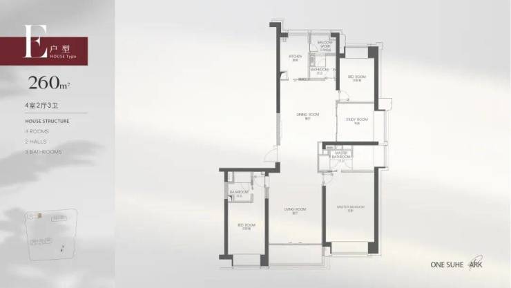 观家新房注意到,苏河湾1号原名安康苑推出的为靠后排的1号楼:此次的户型和上一期保持一致,依旧是140-170平三房、200-260平四房