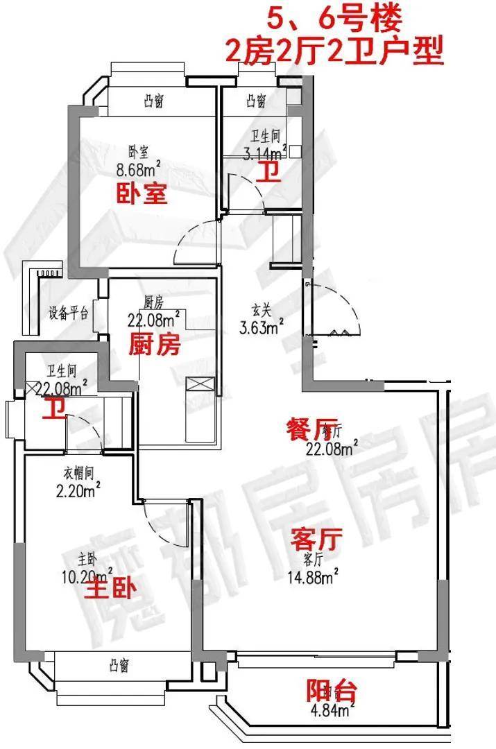 让我们来看看过程稿户型图,从2-4房户型都有。部分楼栋有点意外,竟然提供的是1梯1户的大4房阔绰住宅(1号和2号楼)。