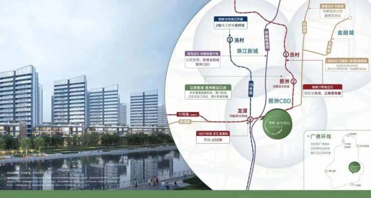 项目距离地铁18号线龙潭站1.2公里,并临近11号线,双线交汇,通勤珠江新城、琶洲仅需30分钟。