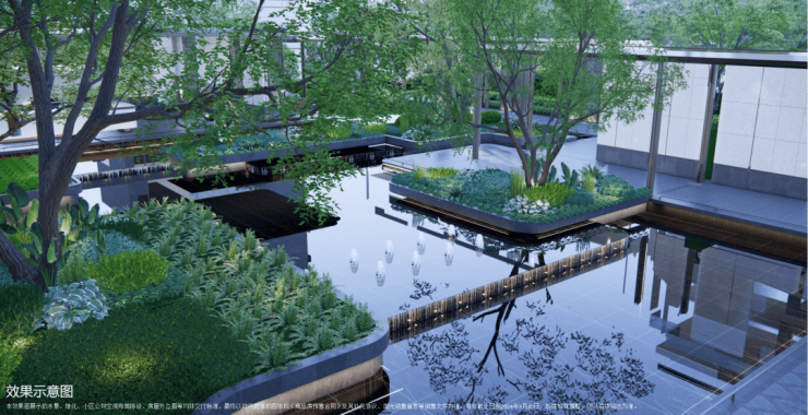 4、下沉式庭院,通过乌桕树、溪流构建一处安静的栖息之境,业主可在这里尽情放空。