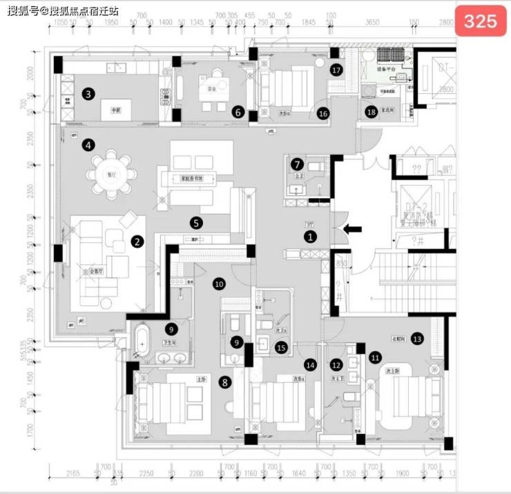 在户型设计上,凤咏朝阳同样展现出了非凡的创意与实力。所有楼幢均采用点状设计,三梯两户的配置,双电梯入户,连接独创的双玄关,既保证了居住的私密性,又避免了交叉动线的相互干扰。全盘均为建面约320-360㎡的大户型,每套南向面宽都达到了约18-19米,公区三面采光,让居住者尽享阳光与美景的拥抱。