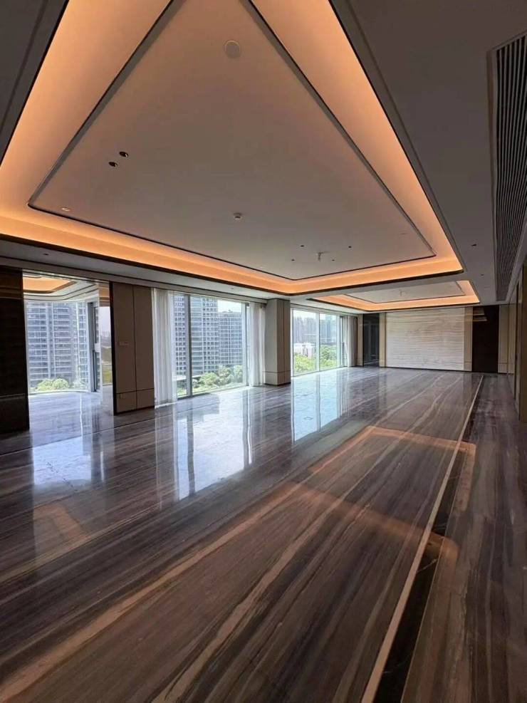 客厅:鱼肚白石王背景墙,地面石材拼接,中央空调:日本大金(顶级豪宅的标配),全屋智能家居系统以及开关控制面板:霍尼韦尔,全屋地暖,入户门:意大利迪瑞装甲门,双开门(迪瑞品牌是世界装甲门的龙头企业)