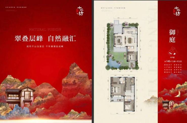 合院作为项目的核心业态,共有271套,面积范围在110㎡至142㎡之间。独特的唐风合院设计,彰显古韵魅力。一层层高3.1米,二层则高达4.65米,得房率方面,双拼户型约为95%,独栋户型约为94%,性价比高。项目将以毛坯形式交付,一、二期为现房,三期预计于2024年底交付。