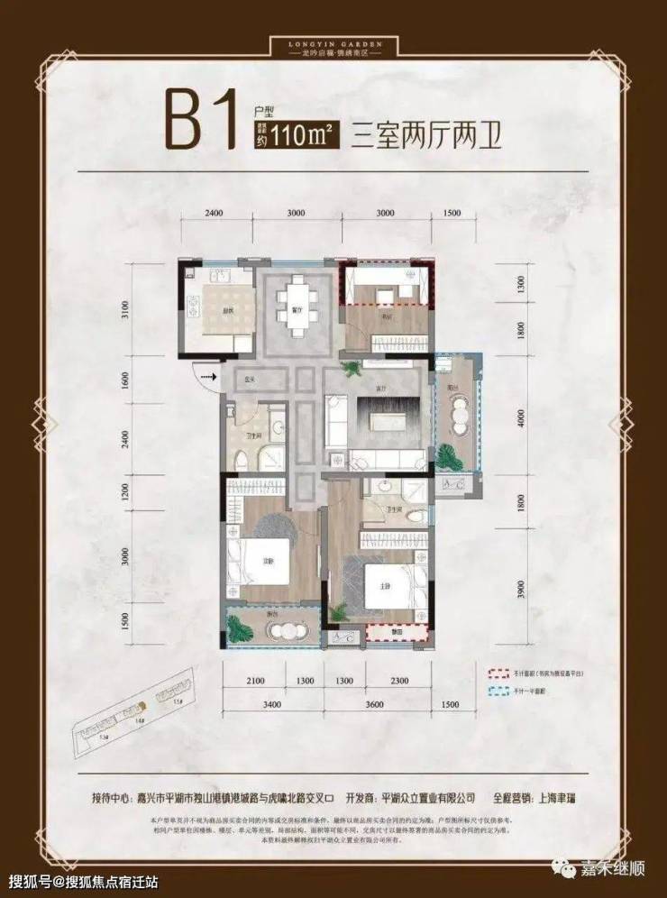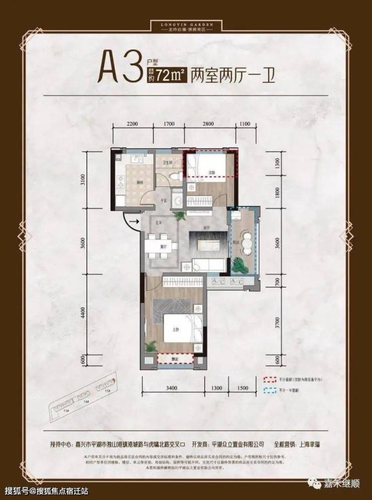 户型:精装修二房;72㎡(中间套超大双南户型,边套三面采光)、精装修110㎡(三开间朝南户型)、