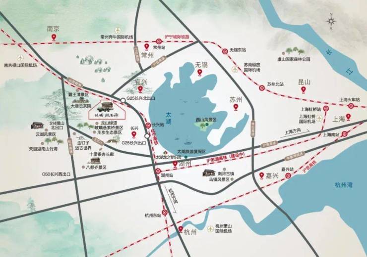 长兴县地处苏浙皖三省交界,素有“三省通衢”的美誉,未来的浙江长兴,真正的“长三角之心”!距离杭州95公里,距离苏州120公里,上海150公里,南京180公里,距离合肥330公里,未来沪苏湖高铁开通后,锋速融入长三角同城生活圈。