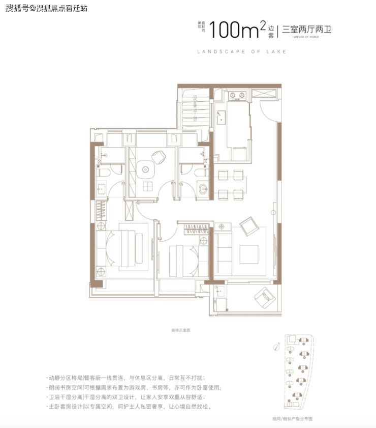 建面约100㎡3房A户型(边套)