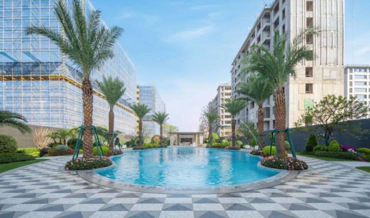 精心打造升级版的蓝钻泳池,映照出独特的“光芒纹路”,似星辰坠入水中,棕榈树高耸挺拔,繁茂葱郁,每一次微风拂过,皆是一场自然的礼赞。