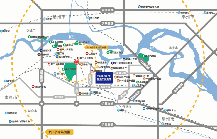 万马(镇江)智造产业基地项目择址镇江京口经济开发区核心,金港大道以南金阳路以西(金阳大道8号)。背靠京杭大运河紧邻金港大道(城市快速路)、金润大道、G42沪蓉高速等8条路铁干线环伺左右,距离丹徒站仅5.8km、大港南站10.9km,南京禄口、常州奔牛等周边城市4个国际机场均位于“一小时经济圈”。项目地理位置优越毗邻镇江市主城区,周边配套娴熟。
