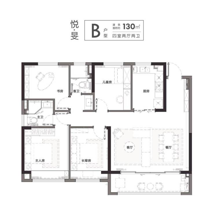 功能4房,动静分离,约12.4M超大采光面,近6M景观阳台,纳藏四季美景