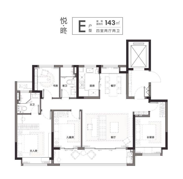 单梯入户,全屋约20000L收纳空间、约5.8米大横厅,约40㎡综合活动区,