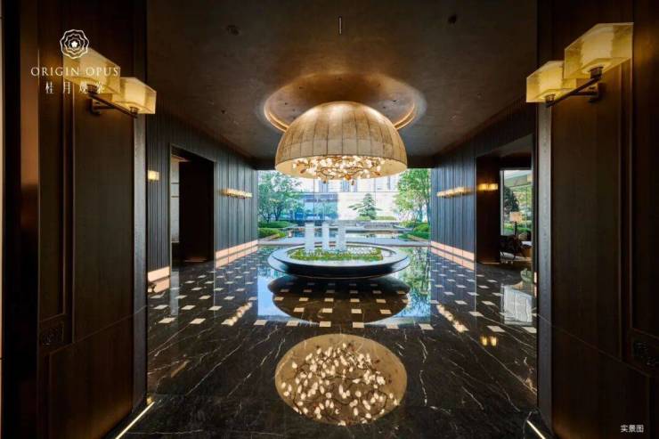 精心打造现代宋韵奢雅大堂,百达翡绿奢石景墙,豪华酒店式门头、仪式门庭、叠石水景、仪式廊桥、滨水会客厅、观景眺望台等多重场景,享受沉浸式风景交互体验。