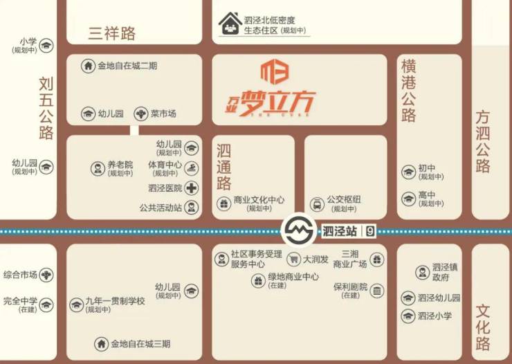 经过多年发展,泗泾已经醇熟“进化”。在如今星樾云栖直线距离约5km的生活圈内,轨交、商业、医疗、生态资源向心汇聚: