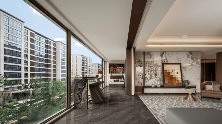 华盛·珑悦云玺不仅在首次开放前,就做到了建筑全封顶,而且洋房外立面全部以实景呈现,再一次演绎华盛“起笔即大作,面世即恢弘”的高标准。明朗的建筑立面和形制,延续了传统住宅建筑的美学标准,采用目前市面少见的天然干挂石材+金属铝板立面,呈现穿越时间的品质美学。无论公区还是私域,甄选匹配项目气质的天然奢石,再以精湛工艺,将自然的震撼与极美一一呈现于奢宅中。