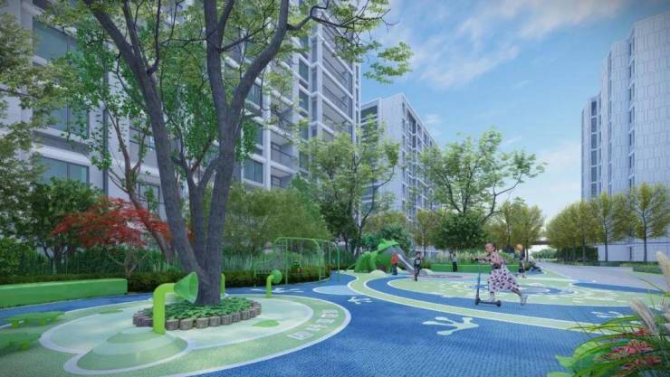项目打造“两轴一环”景观动线,步移景异,满目葱茏;设置“园区入口——中心景观——宅间花园——单元门厅——入户空间”五进归家仪制,让回家成为一场穿越花园的旅行,愉悦归家体验。