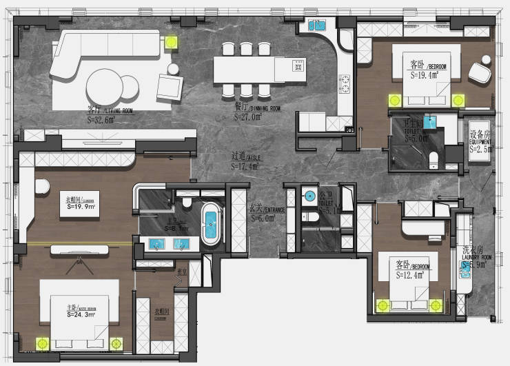 A户型·建筑面积约240㎡ | 三室二厅三卫