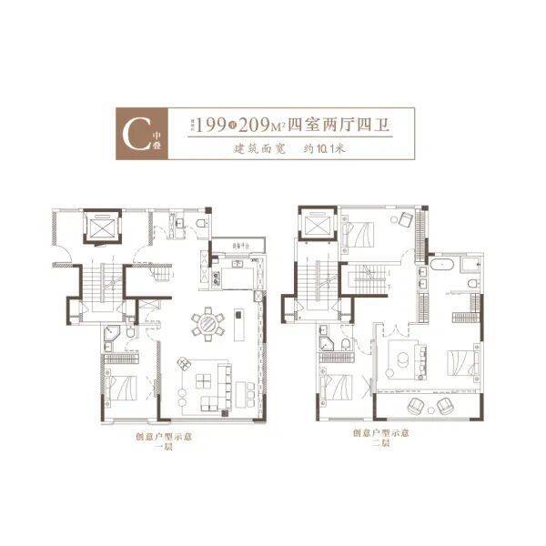 针对终极改善人群,推出236㎡空中平墅,提供全景舱通厅、主卧套房等专属设计。