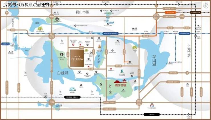目紧邻常嘉高速周庄出入口,亦可迅速接驳同周公路;规划中的轻轨S3号线则东连上海17号线漕盈路站,西接苏州4号线同里站;