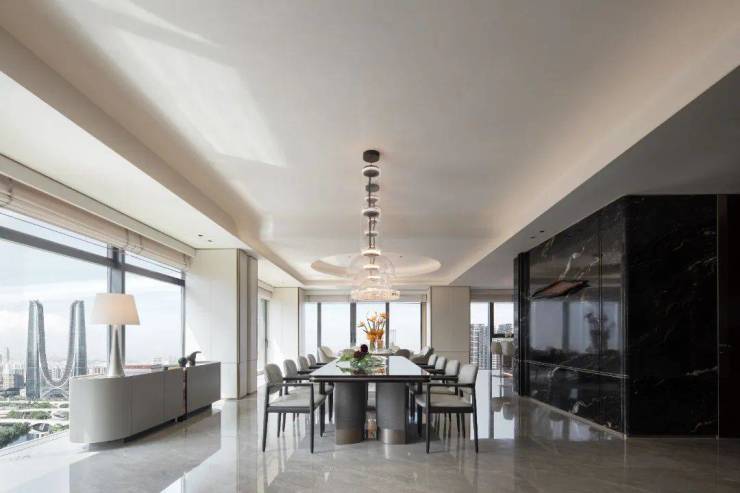 同时打破固有模块化布局,将客厅、餐厅、书房、阳台整体打造成联通又可随意调整的百变空间,让都市新贵无拘的想法能够一一实现。