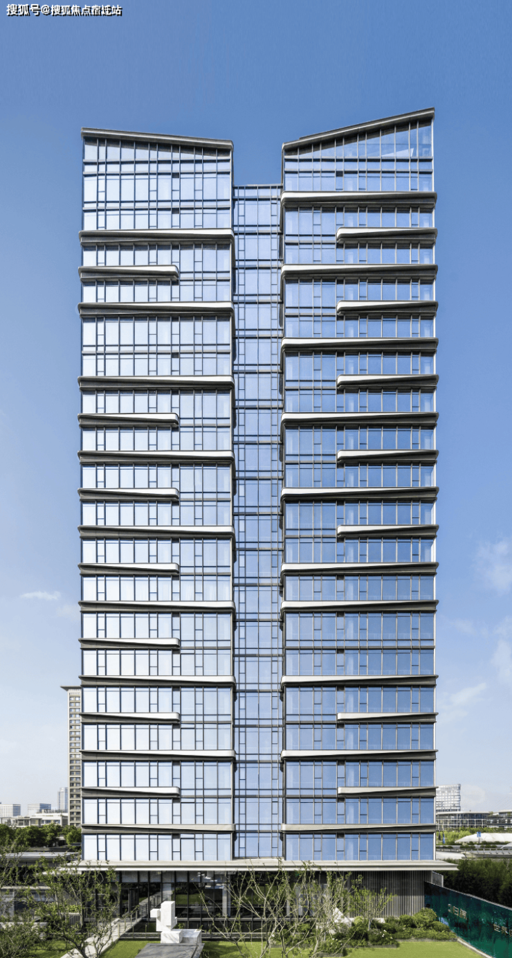 步入前湾·归源,首先映入眼帘的是其独特而富有艺术感的建筑立面。项目采用高奢酒店的设计手法,通过玻璃与铝板的巧妙结合,呈现出波光粼粼的视觉效果,仿佛两岸江面的波光在此交汇。这种设计不仅提升了建筑的美感,更赋予了它一种公建化的气质,使其在城市中独树一帜。
