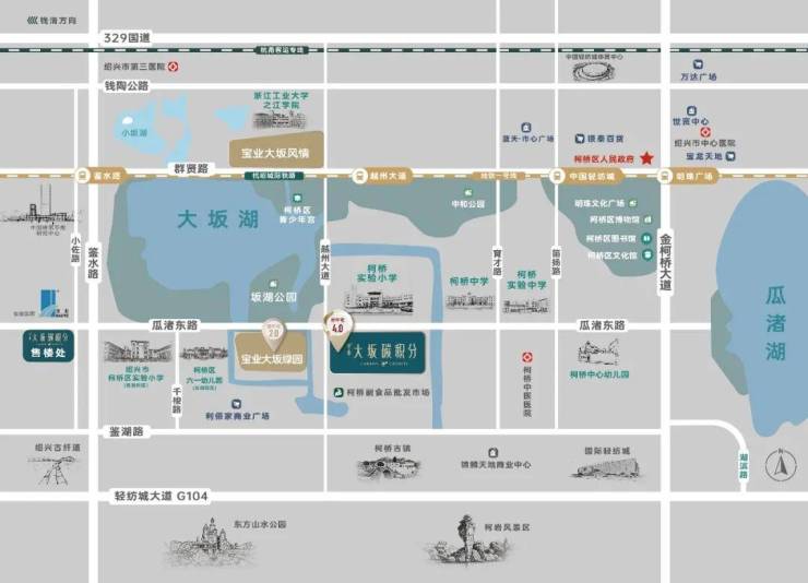 溯源绍兴柯桥核芯腹地,择址坂湖畔,集交通、商圈、教育、生态等丰盈配套于一体,执掌繁华生活圈,开启未来人居新里程。