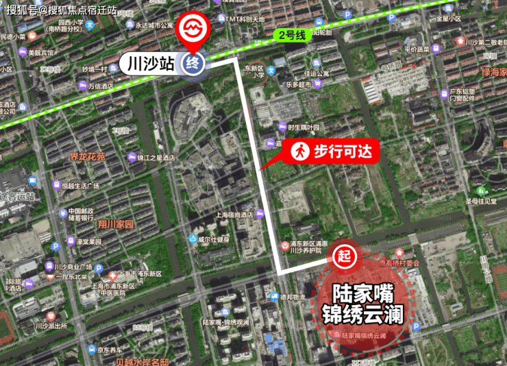 除此之外,陆家嘴锦绣云澜位于川沙首站,距离川沙站直线约750米,步行可达!(数据来源:百度地图)示意图