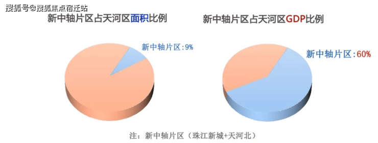 以广州珠江新城+天河北组成的新中轴片区为例,以全区9%的土地贡献了全区约60%的经济总量。换句话说,新中轴片区以全市1/600的面积贡献了全市1/8的GDP。这就是新中轴在经济上的统治力,以产业、资源高度聚集的优势划定时代主场。(注*4)