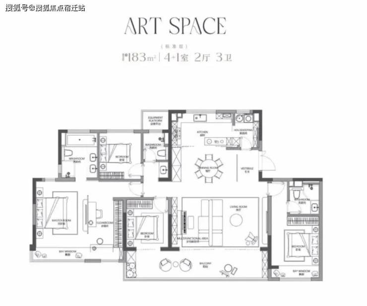 建面约183㎡四房两厅三卫户型诠释了真正大宅的空间尺度。户型采用南向双套房设计,主卧贯穿南北,步入式衣帽间,独立卫生间,明亮的飘窗,都不在话下。