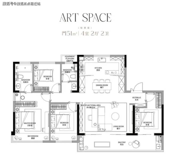 建面约151㎡四房两厅两卫户型,相较于建面约128㎡户型更大的面积,意味着居住舒适度会更高。五开间朝南,约16米南向面宽,约9.1米阔景阳台,超气派餐客厅一体化设计,方寸之间设计感与尊崇感尽显,这个户型的每一项亮点拎出来在同面积段户型中都是王炸级的存在。