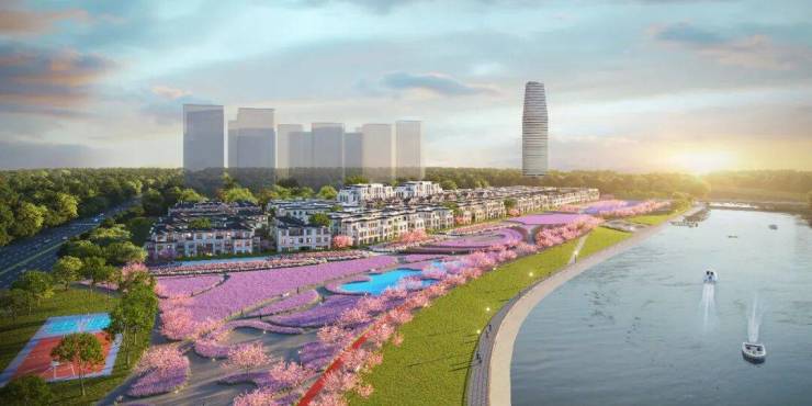 项目特邀国内顶级设计公司蓝调国际为项目操刀设计,参考了时尚之都-米兰、爱之城-维罗纳以及上海泰晤士小镇的设计理念,采用一大道,两轴线,三街巷,四宫苑,多节点,传统东方与欧式街区结合理念,旨在打造一座具有欧式风情、法式浪漫、美式自由、现代美学的复合欧式风情墅区。