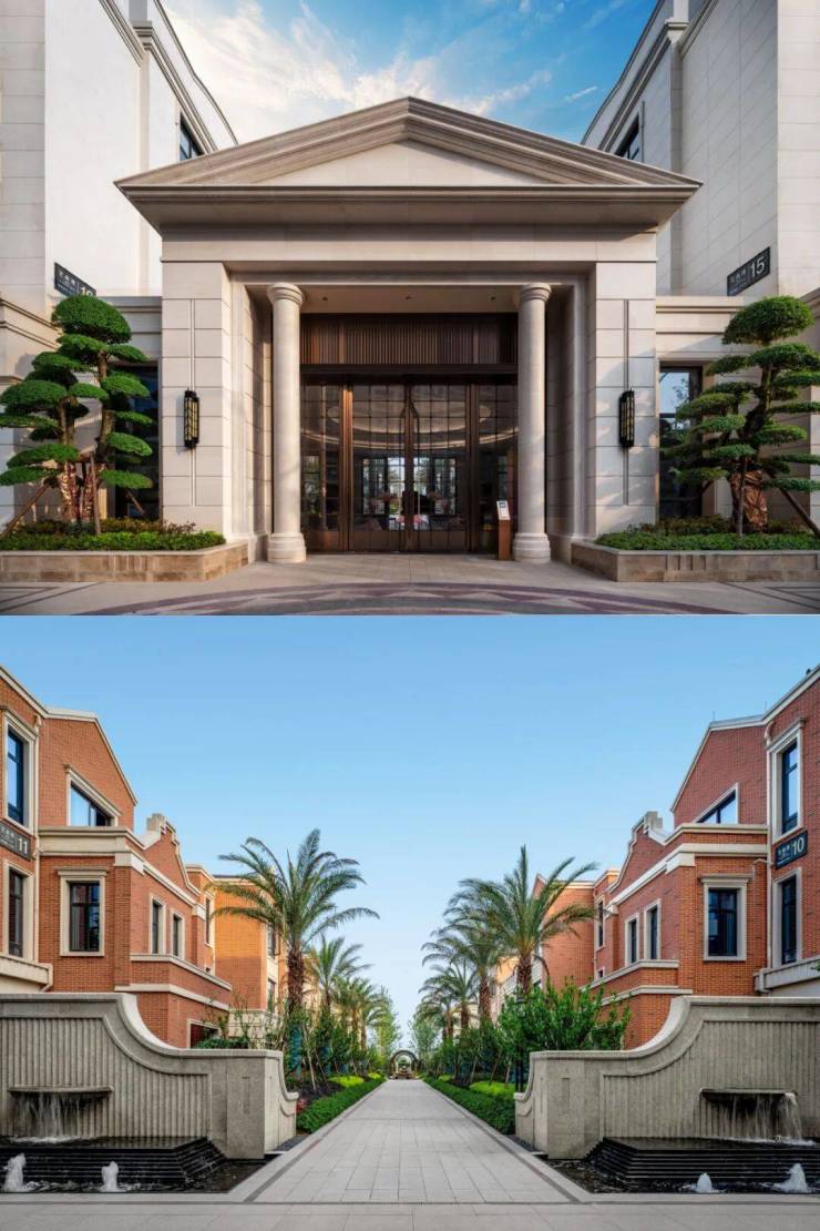 汇集新古典、英式、法式和民国四国风情建筑, 沉稳低调的民国风、对称浪漫的法式风、简约大气的新古典风、红砖坡顶的英式风,多元文化交融的浪漫墅区。