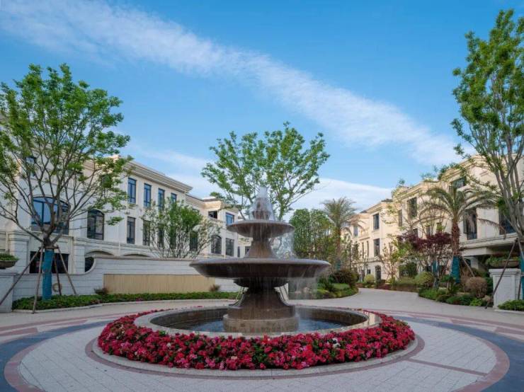 以罗马大道为墅区中心景观交流轴线,从南至北,路旁林荫树阵林立,景观水法、花钵花台和休憩空间与两旁的法式建筑风格相得益彰。