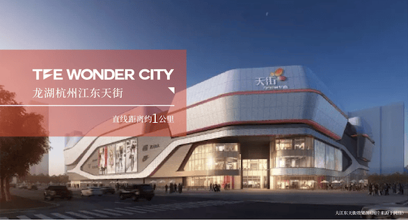 杭州第五座天街,已开业。建筑面积约18万㎡,共 6层,规划涵盖了国际潮牌、大牌餐饮、IMAX影院等在内的超过300个品牌,是集购物、娱乐、休闲、美食、等一站式消费为一体的大型综合体。