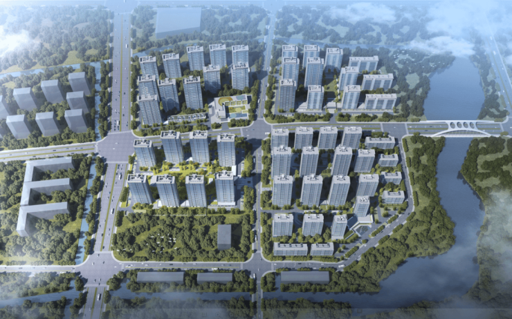 8栋高层建筑呈大围合布局,每一栋都在四面大面积铝板建筑立面、外墙三玻两腔LOW-E玻璃的基础上,注入崭新设计灵感,顶部暖色“皇冠”格栅,打上了湖畔高颜值标签。