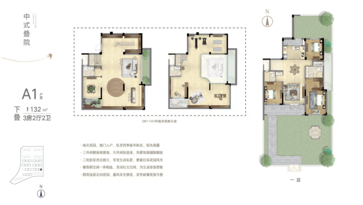 下叠拥有一个豪华的南北双花园,二层还有一个宽面露台。