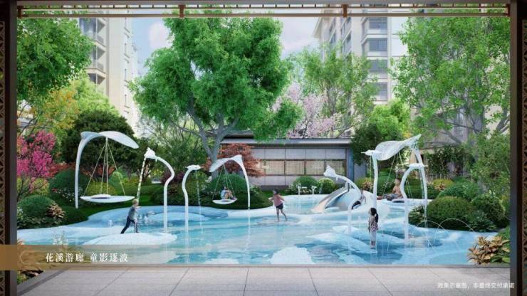 臻制礼序三轴,融汇东西双园,以《西园雅集图》千年画卷为基,复现宋式建筑匠造哲思,营造风雅宋韵九景。整体水系面积近1300㎡,融自然于意境,沉浸体验宋代文人生活逸趣。