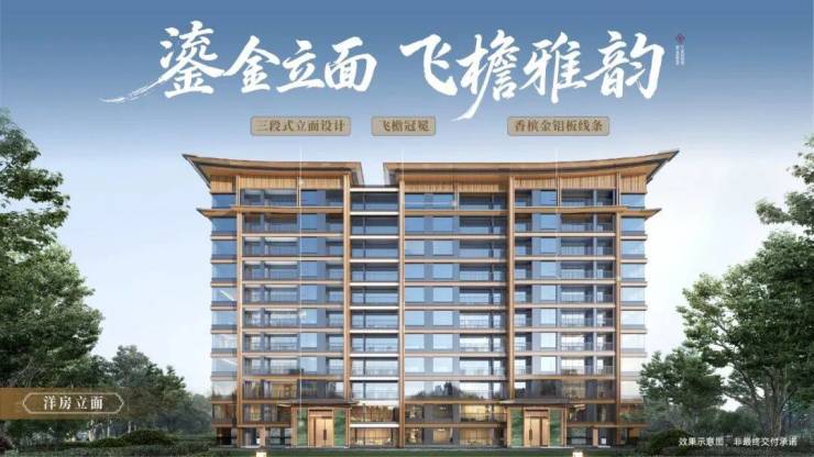 建筑立面取意三段式立面设计,以匠心融汇现代技艺与宋式形制,飞檐冠冕与香槟金铝板线条,于细节处彰显端方威仪与风雅逸韵。