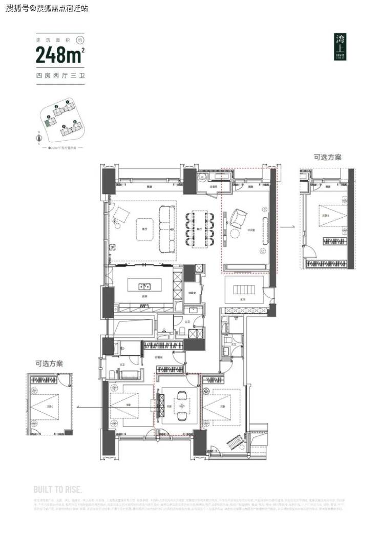 248㎡户型,可以根据需求,定制成超级两房,或三房、四房户型,大大满足了现代家庭多样化的居住需求。