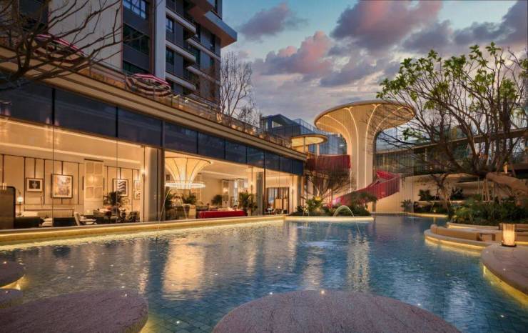 西派云间构建“城市—河流—社区” 的三阶归家礼序。