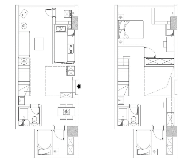 50m2产品(南北向,每层12户):2房+2厅+1卫+功能房;
