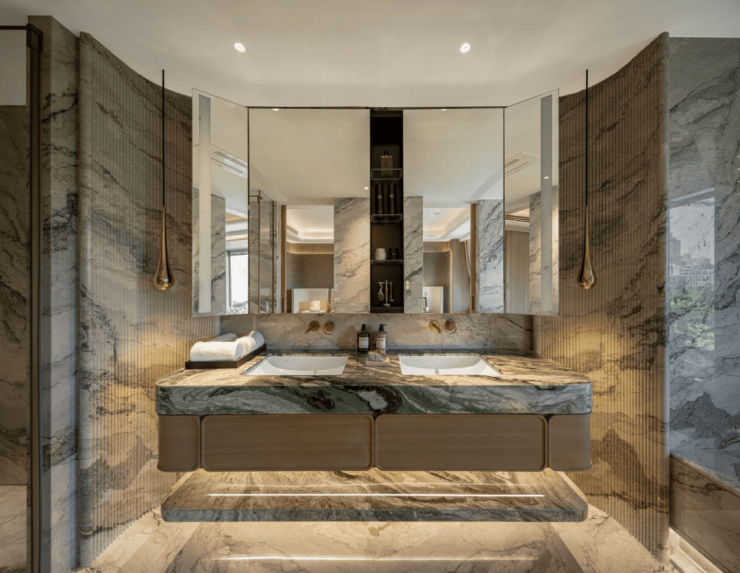 甚至打造了上海首个植物泳池,皮革面绿色石材替代冰冷瓷砖,光影成“树影斑驳”秘境,是闺蜜拍照与私人派对的理想之地。