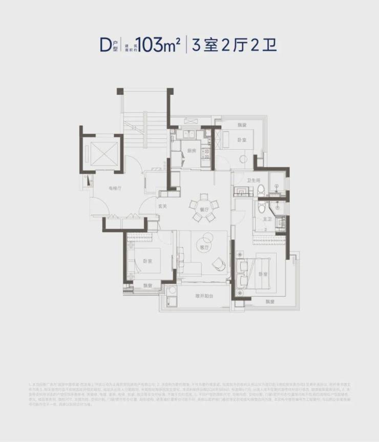 建面约103㎡的边套产品,南向主卧以及北次卧带一个约270°的转角飘窗,这一个设计在上海算得上是独树一帜。