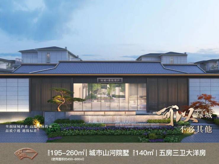 绿城·春桂璟庐,城芯1.01稀贵低容积率,依山傍水,规划江山院子、城市排屋纯粹低密业态,以中式屋檐和全景门窗写意东方华贵形韵。